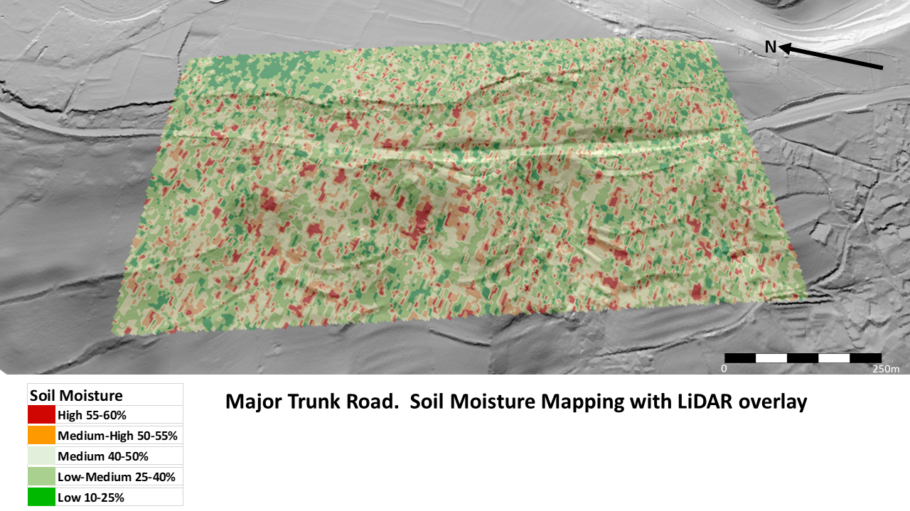 Earth Observation techniques now include ASTERRA’s EarthWorks L-Band PolSAR which enables the user to view concentrations of sub surface soil moisture in areas such as cuttings, embankments and slopes.
