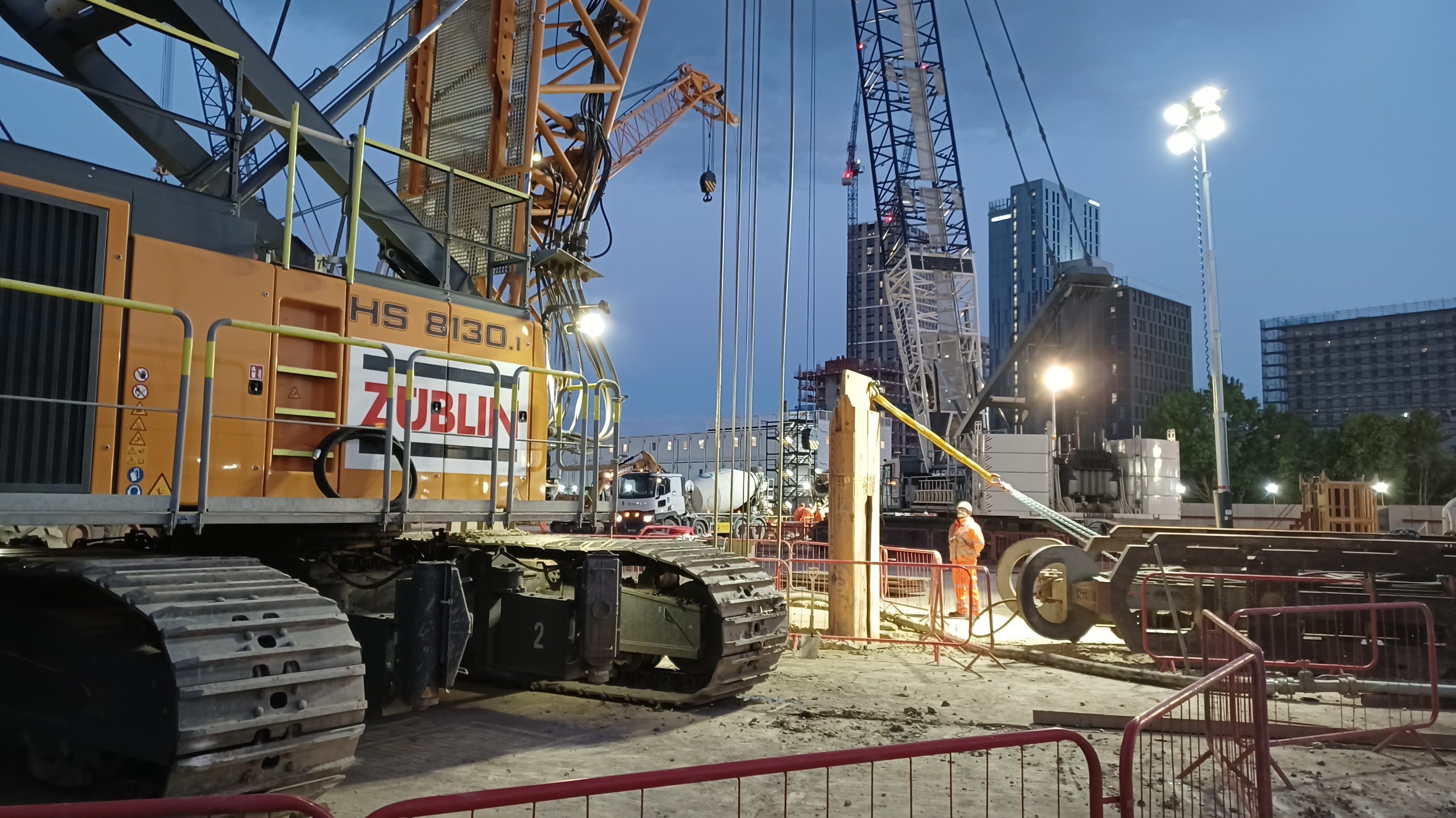 The construction of buttress panels for the caterpillar shaped diaphragm wall shaft at VRCB presented some difficult challenges. The complex buttress panel cages needed a significant amount of temporary works to allow them to be lifted into position safely and without damage. Splicing of the heavily reinforced sections posed unacceptable risks to H&S and quality whilst transporting the 35m long and 4.5m wide, cruciform single section cages to site was not feasible. The solution was to construct the 80t cages on-site and in a purpose-built facility providing a CARES compliant environment. The lifting operations of the cages used two 650t cranes performing a tandem lift before the external skeletal truss was removed. All cages were installed successfully and safely achieved through close collaboration between Client, Zueblin and the supply chain. This achievement provides a valuable reference for buttress panel design and related feasibility assessments for future tunnelling projects.