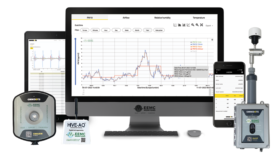 We are UK distributors of the Omnidots Swarm Vibration Monitor and HIVE-AQ™ Dust Sensor, MCerts accredited, and offer a broad range of Air Quality sensors, in particular, the HIVE-AQ Urban, also MCerts accredited, which monitors simultaneous PM10, PM2.5, and PM1 and gases - CO, CO2, H2S, NO2, NOX, SOX or VOCs.