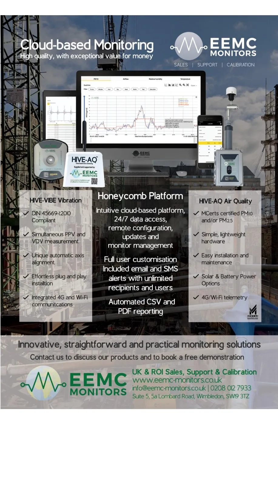 EEMC Monitors offer a complete cloud-based monitoring solution for dust and vibration on a single integrated platform.